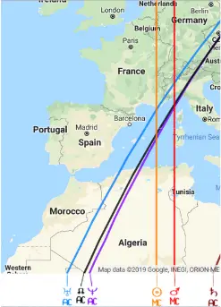 Cada linha traçada pelas diferentes latitudes, longitudes, nas diferentes regiões ou lugares, nos mostra antecipadamente como vai ser a vida da pessoa, mesmo sem ela ter ido lá, baseado na data e hora de nascimento de cada pessoa! O que pode ser ótimo para uma pessoa, pode ser bem ruim para a outra! E isto se pode ver claramente, antecipadamente, por este maravilhoso estudo da Astro Cartografia / Relocação! Agora imagine quanto sofrimento e despesas desnecessárias podem ser evitadas! Prevenir é muito mais fácil e econômico! Se uma pessoa sonha em ir passar seu aniverário na Europa qual seria o melhor país, cidade, região para ela?