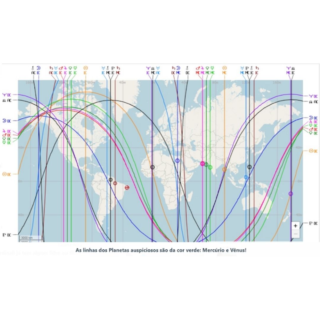 Linhas Planetárias: O mapa exibe linhas que representam a influência dos 10 planetas.