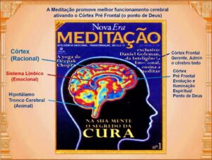 Durante a prática da Meditação alcançamos níveis de relaxamento e descanso mais profundos do que no sono da noite, o que permite a real eliminação do estresse, causa verdadeira das doenças psicossomáticas (Hipertensão, gastrite, alergias, dermatites, queda de cabelo, depressão, insônia, ansiedade, crises de pânico, medos, fobias, baixa autoestima, auto confiança, fadiga, cansaço, desânimo, etc.). A Meditação ativa o lóbulo pré frontal do córtex cerebral, o chamado ponto de Deus!