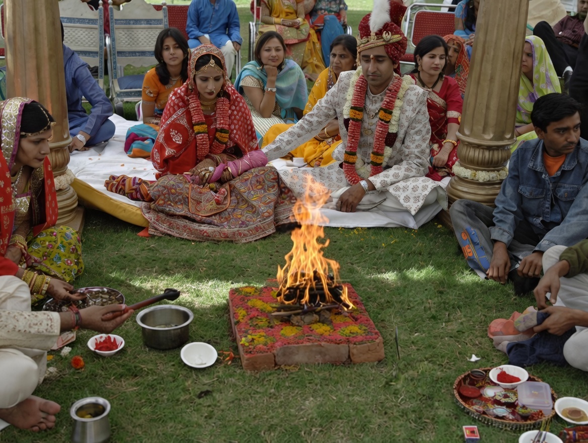 Os Pandits ficam recitando os Mantras de harmonização e proteção para que a união conjugal dure por toda vida do casal!